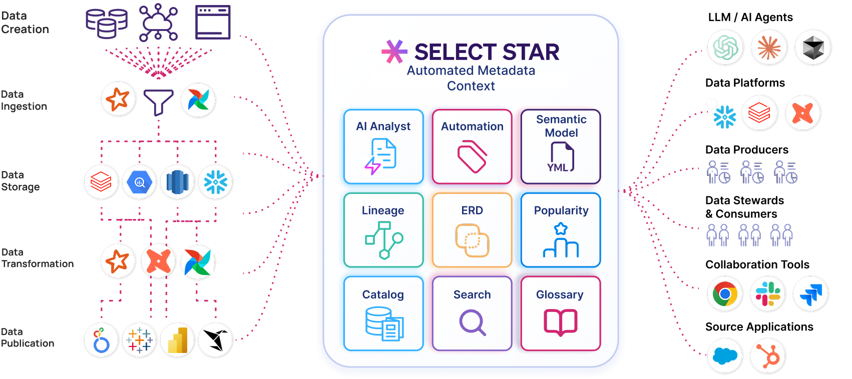 Select Star was created to address these challenges head-on. Founded over five years ago, Select Star has quickly established itself as a leader in metadata management, offering a platform that automates the discovery, classification, and documentation of data across an organization. By automating these processes, Select Star not only reduces the manual effort required but also enhances the accuracy, consistency, and accessibility of data.